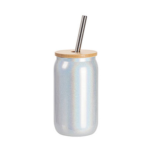 Un bicchiere da 400 ml con cannuccia e coperchio in bambù per sublimazione - glitter Bianco