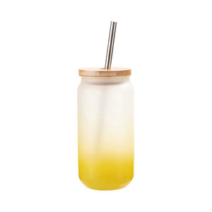Vetro smerigliato da 550 ml con cannuccia e coperchio in bambù per sublimazione - sfumatura giallo