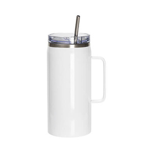 Tazza da viaggio in acciaio inox da 1080 ml con coperchio e cannuccia per sublimazione - bianco