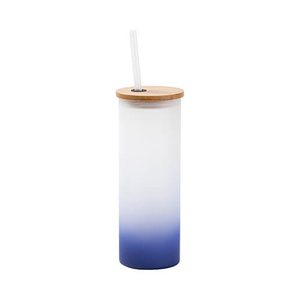Una tazza glassata da 500 ml con un coperchio in bambù e una cannuccia per la sublimazione - sfumatura blu navy