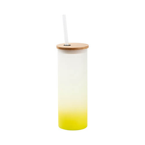 Una tazza glassata da 500 ml con un coperchio in bambù e una cannuccia per la sublimazione