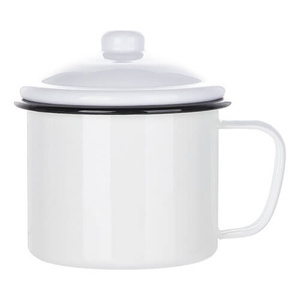 Tazza in metallo smaltato 1000 ml con coperchio per sublimazione - bianca con bordo nero