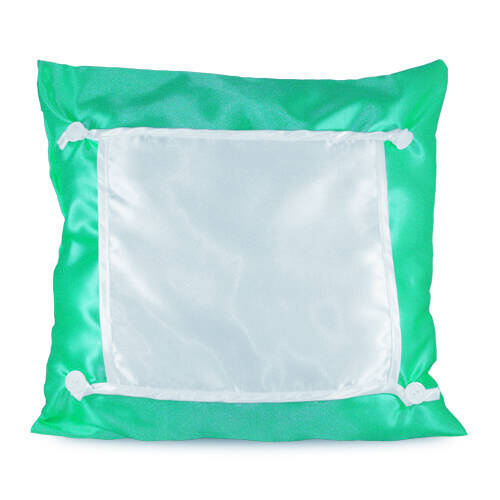 Copricuscino lucido in raso ECO di colore verde con la copertura fissata per la stampa in tecnologia di sublimazione. Per i copricuscini consigliamo il riempimento dedicato nei prezzi convenienti.