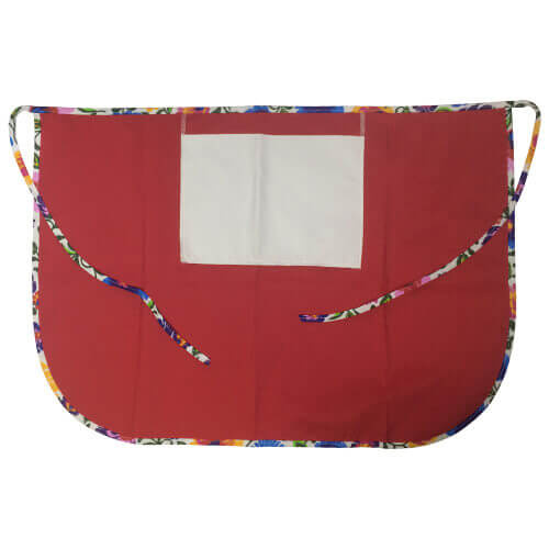 Grembiule classico con tasca per stampa – di colore rosso con bordino colorato - fiori slavi bianchi