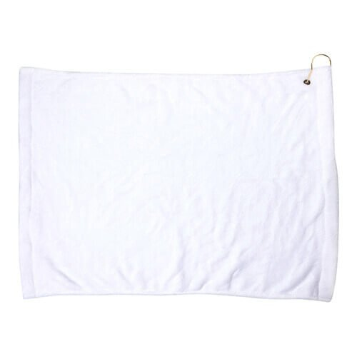 Asciugamano da golf per la stampa in tecnologia di sublimazione. Asciugamano con gancio metallico per appendere.