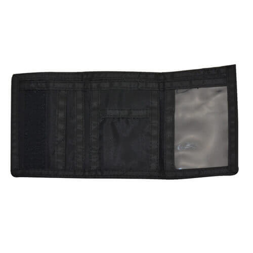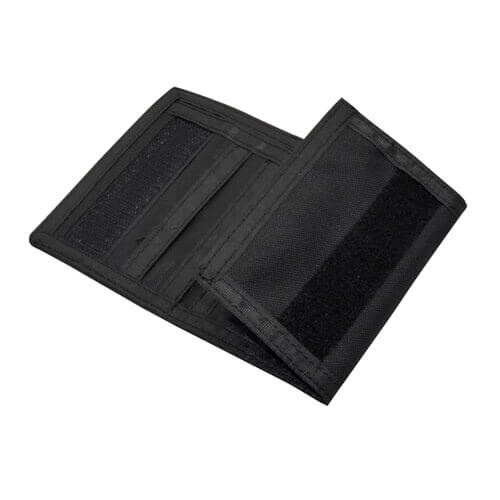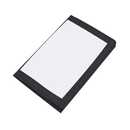 Portafoglio per la stampa a sublimazione. Portafoglio realizzato in tessuto di poliestere durevole, dotato di pratici taschini, con chiusura a velcro.
