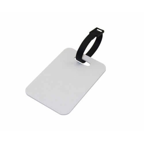 Etichetta per bagaglio in feltro per la stampa a sublimazione. Etichetta con un cinturino in plastica da fissare al bagaglio.