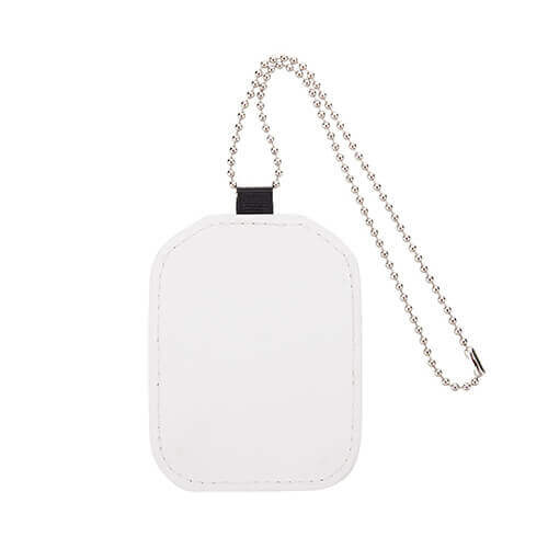 Pendente in pelle per la stampa a sublimazione. La stampa viene effettuata su entrambi i lati. Completo di catenella a sfere.
