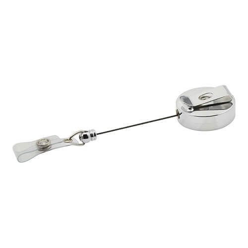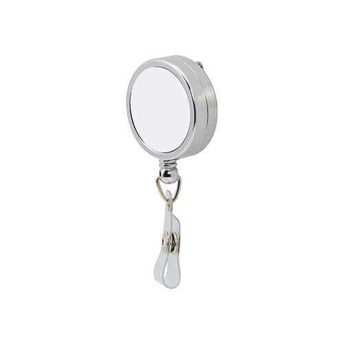 Portachiavi in metallo argentato - guinzaglio retrattile per stampa a sublimazione.