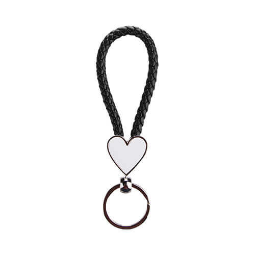 Portachiavi per la stampa a sublimazione. Realizzato in metallo con treccia in pelle. La stampa viene effettuata su placche metalliche, fornite insieme al portachiavi, che vanno incollate all’area fresata del portachiavi. Il portachiavi è confezionato in una scatola decorativa con inserto nero che imita il velluto per tenere fermo il portachiavi. Il prodotto finito può diventare un regalo originale etc.