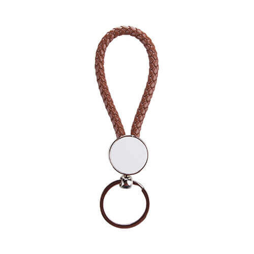 Portachiavi per la stampa a sublimazione. Realizzato in metallo con treccia in pelle. La stampa viene effettuata su placche metalliche, fornite insieme al portachiavi, che vanno incollate all’area fresata del portachiavi. Il portachiavi è confezionato in una scatola decorativa con inserto nero che imita il velluto per tenere fermo il portachiavi. Il prodotto finito può diventare un regalo originale etc.