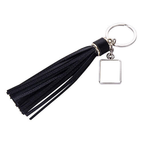 Portachiavi per la stampa a sublimazione. Portachiavi in metallo con frange lunghe. La stampa viene effettuata su una placca metallica, fornita insieme al portachiavi, che va incollata all’area fresata del portachiavi. Il portachiavi è confezionato in una scatola decorativa con inserto nero che imita il velluto per tenere fermo il portachiavi. Il prodotto finito può diventare un regalo originale etc.