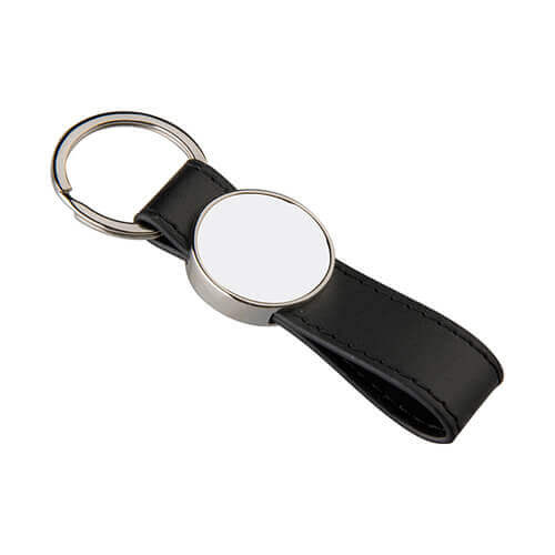 Portachiavi in pelle e metallo per la sublimazione – cerchio - nero