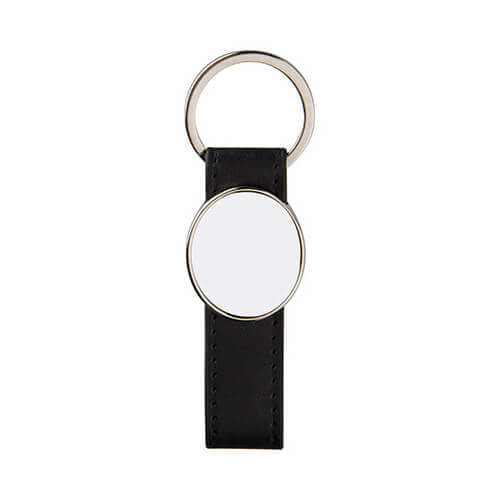 Portachiavi per la stampa a sublimazione. Realizzato in pelle nera con elemento in metallo. La stampa viene effettuata su una placca metallica, fornita insieme al portachiavi, che va incollata all’area fresata del portachiavi. Il portachiavi è confezionato in una scatola decorativa nera con inserto nero che imita il velluto per tenere fermo il portachiavi. Il prodotto finito può diventare un regalo originale etc.