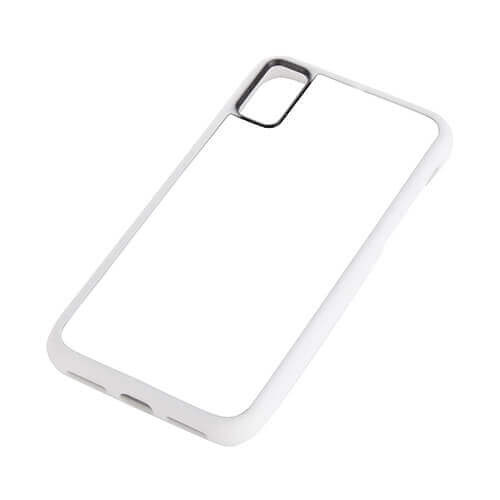 Custodia per iPhone X per la stampa in tecnologia di sublimazione. La custodia protegge perfettamente il telefono dall'usura eccessiva durante l'uso quotidiano. La stampa viene eseguita sulla piastrina mettallica addiunta, che deve essere incollata alla superficie esteriore della custodia.