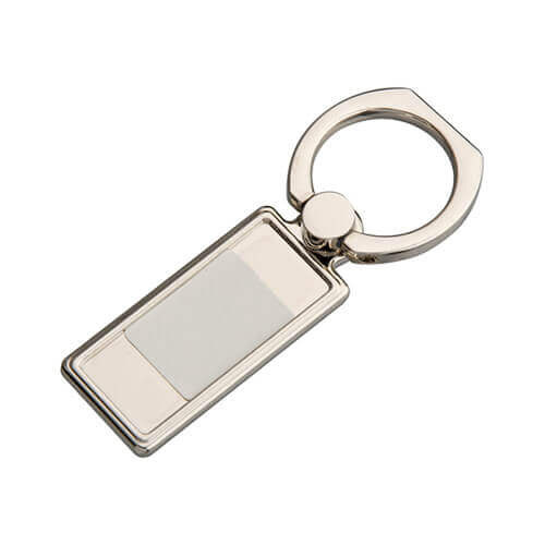 Rotabile maniglia sostegno dita per uno smartphone per la stampa in tecnologia di sublimazione. La stampa viene fatta sulla piastra metallica allegata, che deve essere incollata al posto fresato. La maniglia è confezionata in una scatola decorativa con inserto in tessuto velluto nero per il fissaggio del portachiavi. Il prodotto può essere utilizzato come regalo originale, ecc.