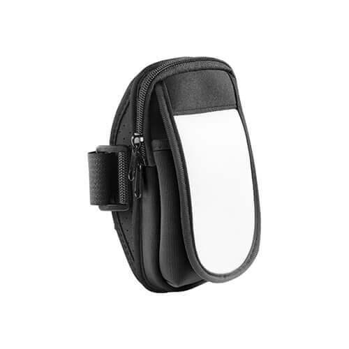 Una fascia sportiva da braccio per la stampa in tecnologia di sublimazione. La fascia ha due tasche: una grande con cerniera per mancini e destri e una più piccola con chiusura in velcro. La fascia viene fissata al braccio con un velcro regolabile.