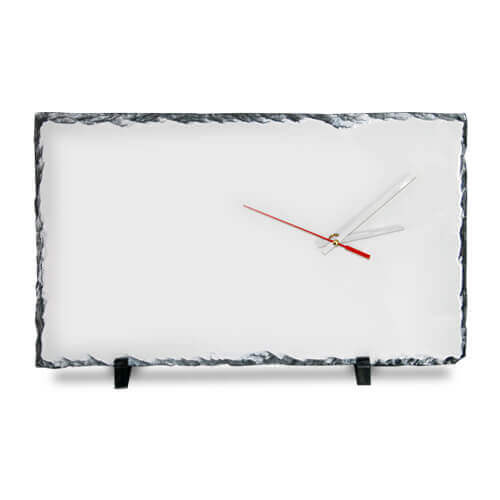 Lastra di granito - orologio per la stampa in tecnologia sublimatica. Il set comprende un supporto in plastica che consente l'esposizione del granito già pronto con stampa e meccanismo dell’orologio. La soluzione perfetta per la produzione di premi, ringraziamenti, souvenir occasionali ecc.