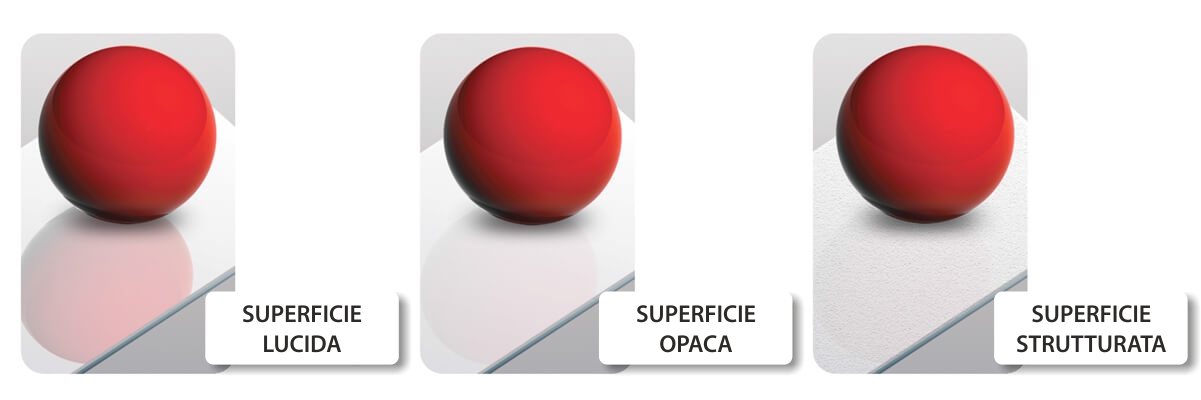 7 tipi di superfici: lucide, opache, con texture, Glow, Wallsky, Saltlake, Icetouch |