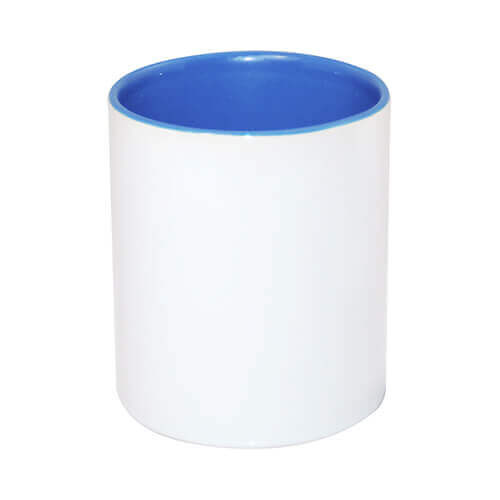 Portapenne in ceramica, bianco con interno blu, rivestito con uno strato di poliestere per la stampa a sublimazione.