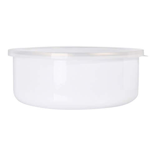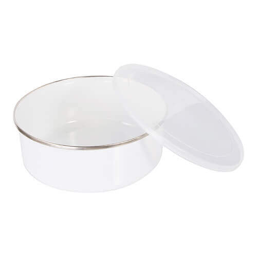 Ciotola smaltata da 1200 ml per la stampa in tecnologia sublimatica. Ciotola con coperchio in plastica trasparente.