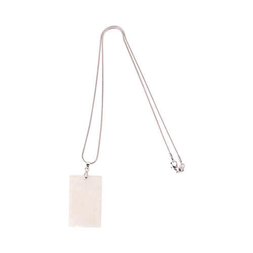 Ciondolo conchiglia rettangolare con catenina da sublimare. La stampa è fatta sulla piastra di metallo annessa la quale va attaccata allo spazio fresato. L'ideale per un regalo originale.