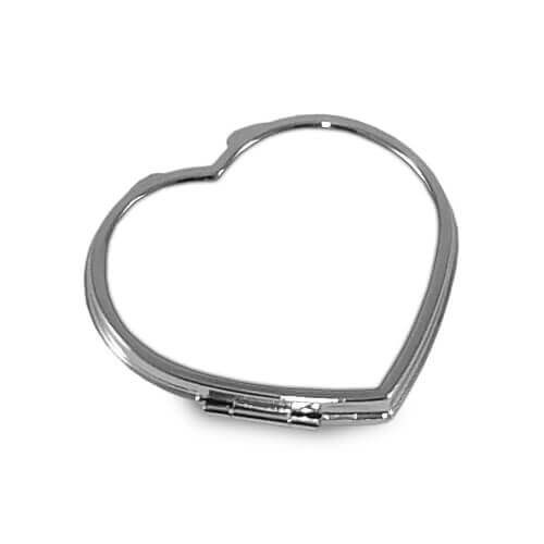 Specchietto a cuore in metallo chiudibile da sublimare. La stampa è fatta su piastra di metallo annessa allo specchio la quale viene attaccata allo spazio fresato. L'ideale per un regalo originale.
