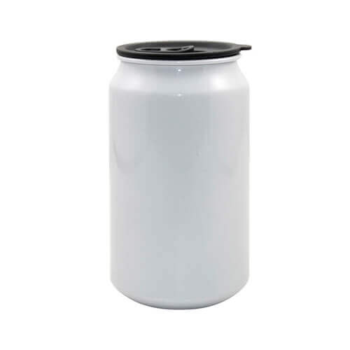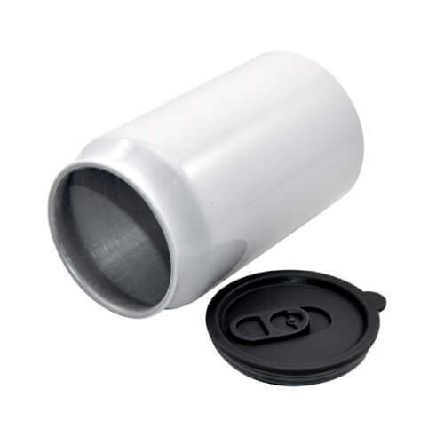 Borraccia - lattina da 500 ml rivestita con uno strato di poliestere da sublimare. Il corpo della borraccia è in metallo, la chiusura in metallo e plastica.