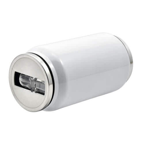 Borraccia - lattina da 300 ml rivestita con uno strato di poliestere da sublimare. Il corpo della borraccia è in metallo, la chiusura in metallo e plastica.
