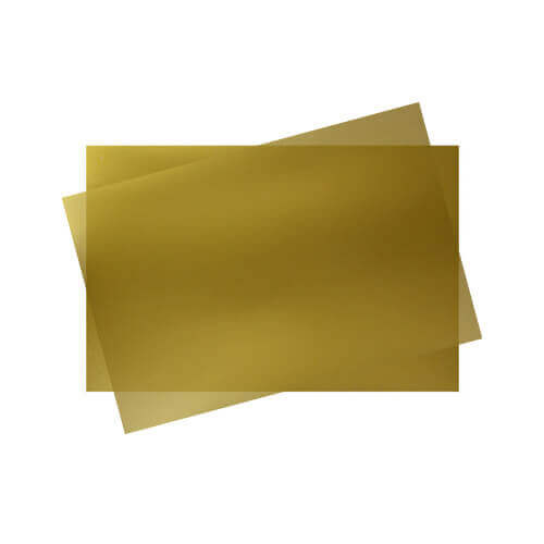 Film a doppio strato per effettuare le stampe UV su cristalli. Film per cristalli senza la piastra posteriorie di potezione, film di colore oro, modello JP12A. La stampa viene effettuata sul lato ruvido del film mediante una stampante con inchiostri per i cristalli. La stampa finita va asciugata con un asciugacapelli.