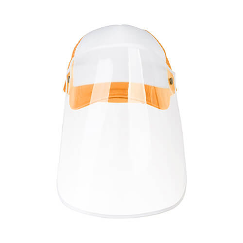 Cappuccio con bottoni a pressione per il fissaggio della visiera - Mascherine facciali in PVC . Cover venduta separatamente.