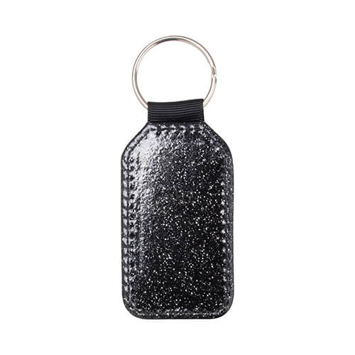 Il lato per la stampa in bianco, l'altro ricoperto di glitter rosso. Portachiavi con portachiavi in metallo cromato.