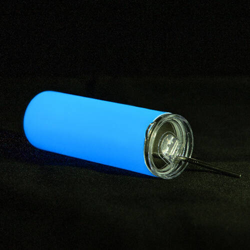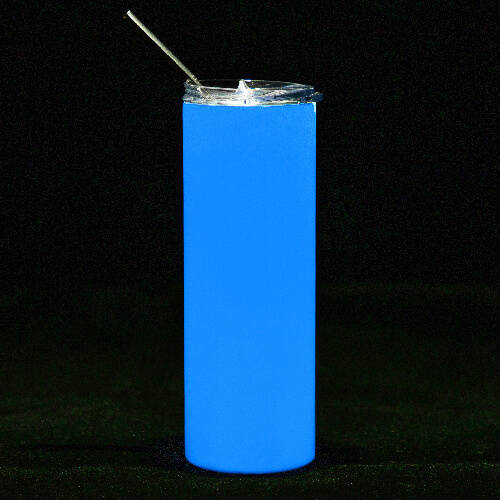 Una tazza con un coperchio di plastica trasparente e una cannuccia di metallo.