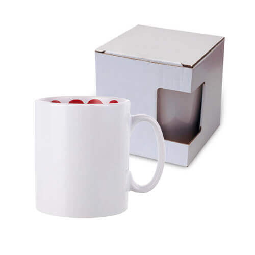 Tazza in ceramica con interno I love You, trattato con poliestere per renderlo adatto alla stampa a sublimazione. Possibilità di acquisto di un pezzo. Tazza con la scatola.