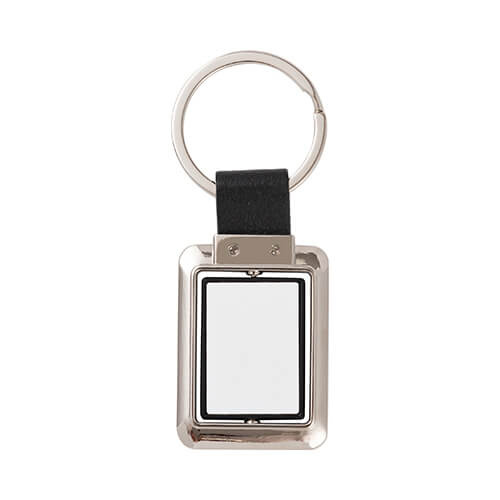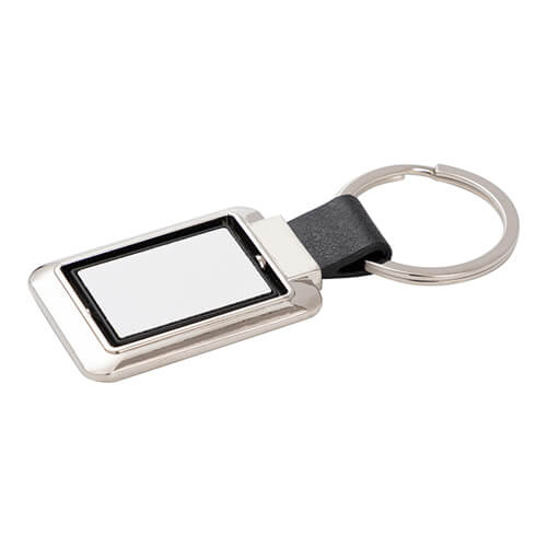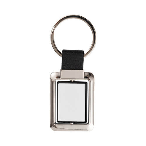 Un portachiavi in metallo per chiavi su una striscia nera per la stampa a sublimazione.