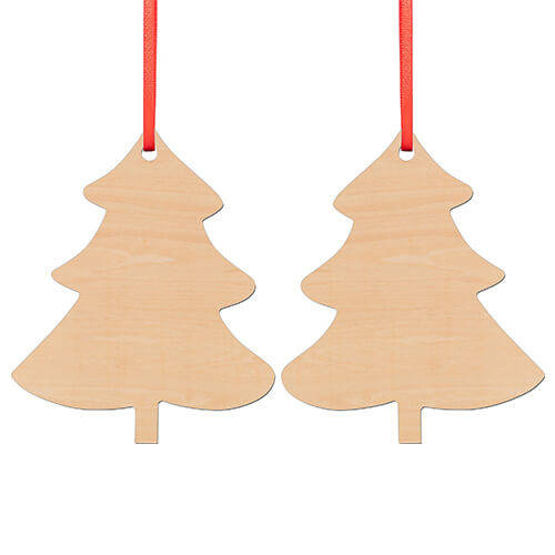 Ciondolo albero di Natale in compensato per stampa a sublimazione. La stampa può essere eseguita su entrambi i lati dell'etichetta.