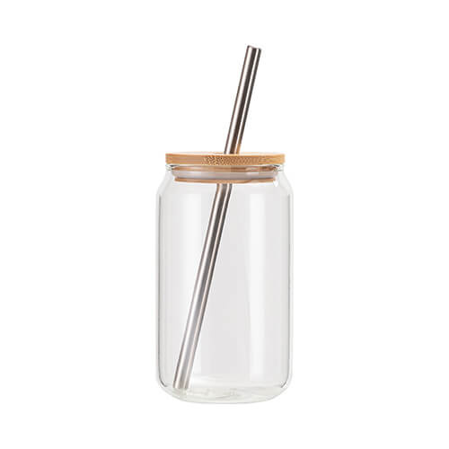 Un bicchiere da 400 ml con cannuccia e coperchio in bambù per sublimazione