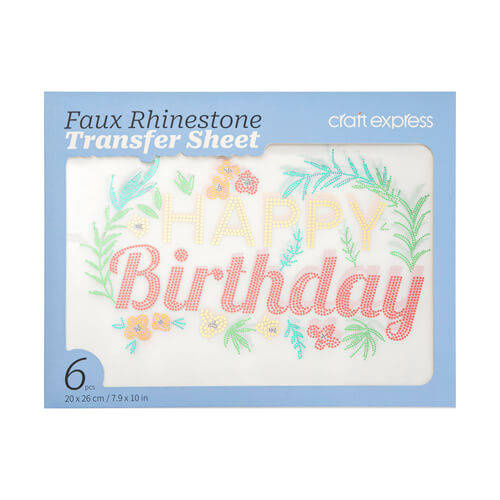 Un set di fogli con zirconi per trasferimento termico - Happy Birthday