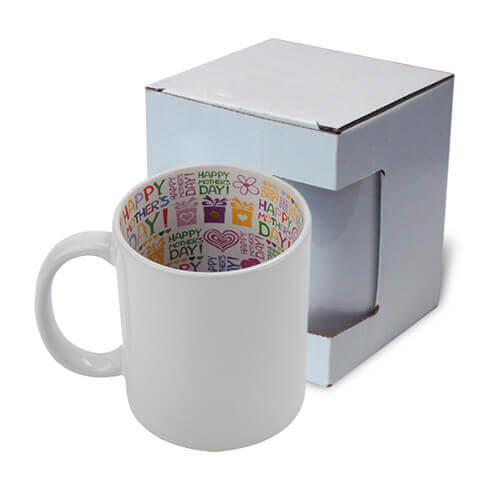 Tazza in ceramica con interno Happy Mother’s Day, della classe A+ /vedi le differenze con altre classi di ceramica/ trattato con poliestere per renderlo adatto alla stampa a sublimazione. Possibilità di acquisto di un pezzo. Tazza con la scatola.