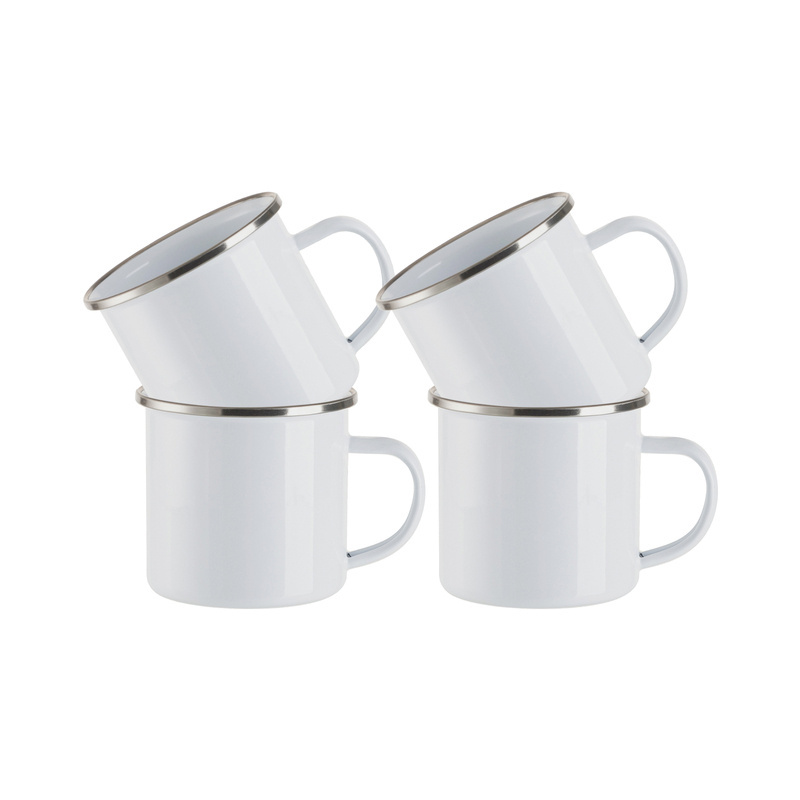 Set di 4 tazze smaltate da 360 ml per la stampa a sublimazione e a trasferimento termico.