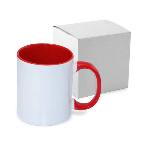 Tazza bianco in ceramica FUNNY con manico e interno della classe ECO /vedi le differenze con altre classi di ceramica/ trattato con poliestere per renderlo adatto alla stampa a sublimazione. Possibilità di acquisto di un pezzo. Tazza con interno e manico rosso. Tazza con la scatola.