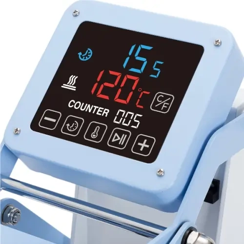 Una pressa per penna Craft Express a due stazioni per effettuare trasferimenti su tappetini da calcio.