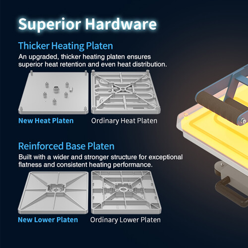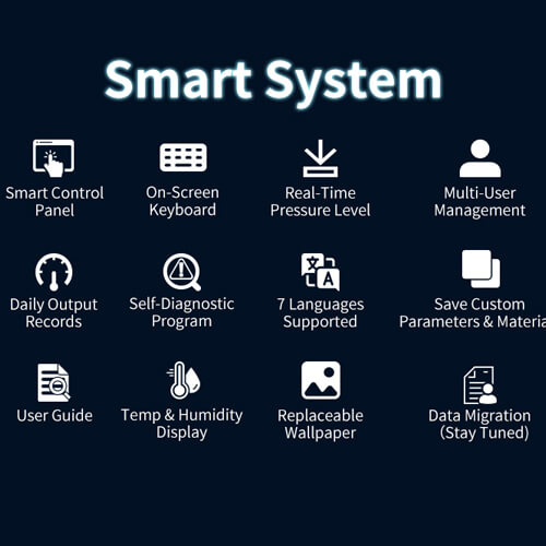 La pressa è dotata di uno schermo da 5 pollici e di 7 livelli di pressione regolabili.