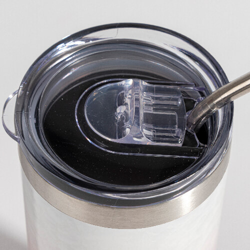 Tazza con effetto 3D Puff Cloud, doppia parete, coperchio in plastica trasparente e cannuccia in acciaio inox.