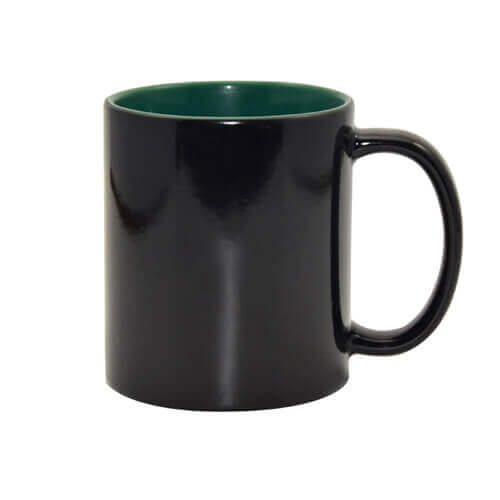 Tazza ceramico, magico di colore nero con l’interno verde scuro della classe A+ /vedi le differenze con altre classi di ceramica/, trattato con poliestere per renderlo adatto alla stampa a sublimazione. Possibilità di acquisto di un pezzo.