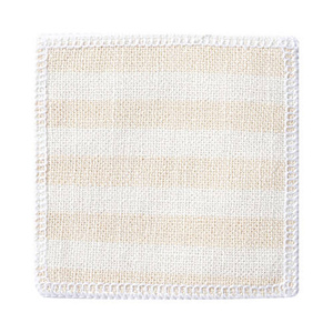 Sottobicchiere in tela 10 x 10 cm crema con strisce verde chiaro per sublimazione